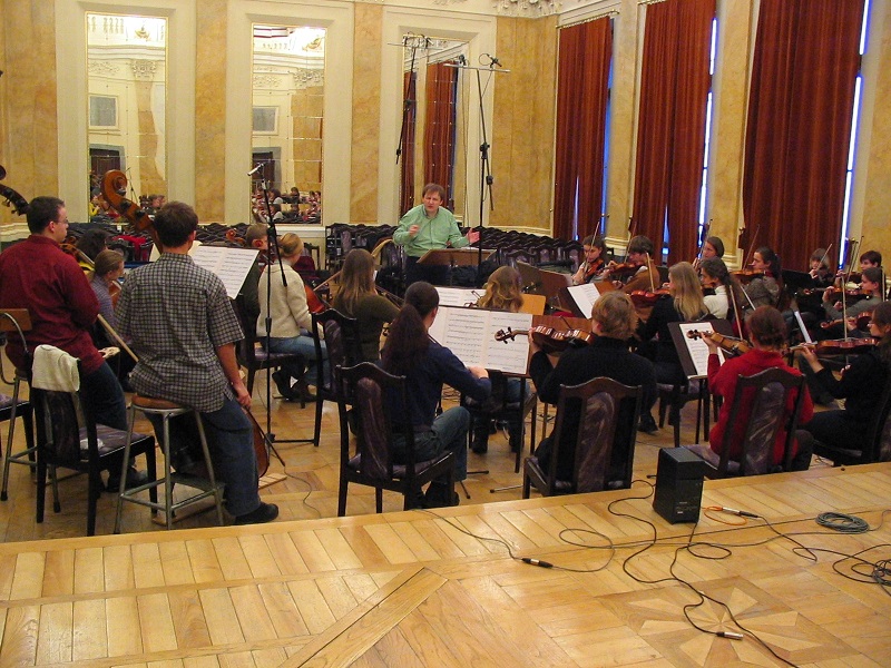 Nagranie płyty z utworami Lutosławskiego,Bujarskiego i Stachowskiego. Wojciech Czepiel i Orkiestra Kameralna Akademii Muzycznej w Krakowie (fot. Lech Słota)